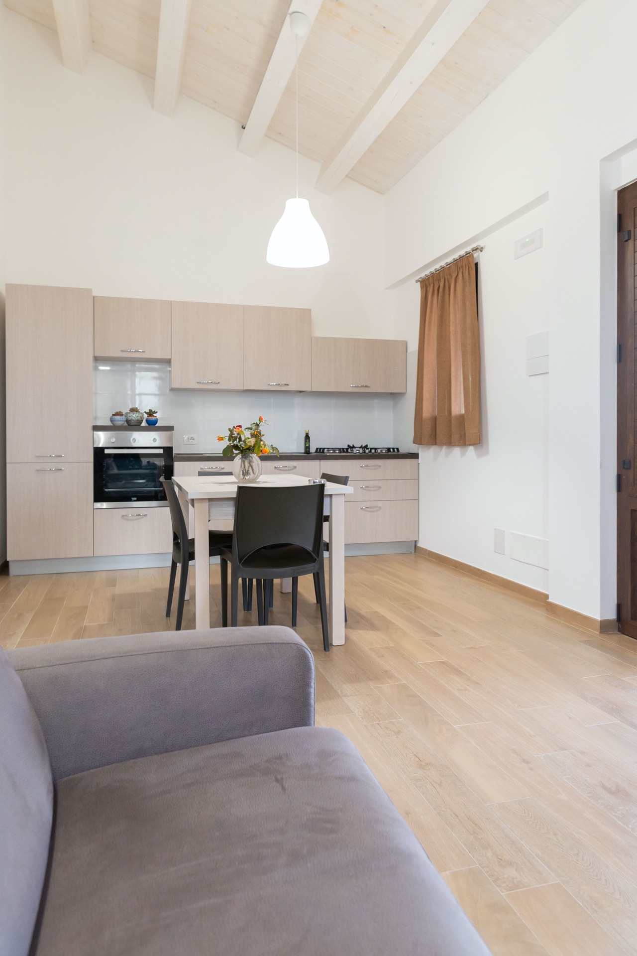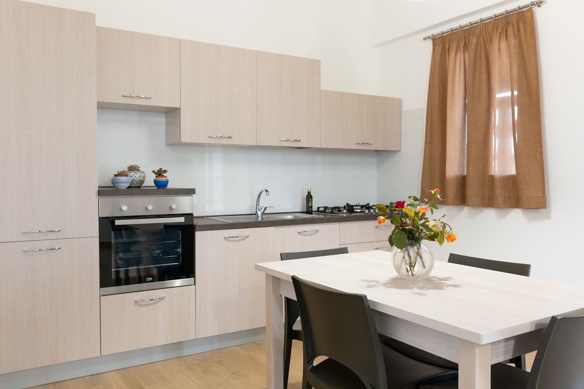 Nella spaziosa cucina-soggiorno, un divano letto matrimoniale, è ottimo per accogliere due ospiti extra. La cucina è provvista di lavastoviglie.