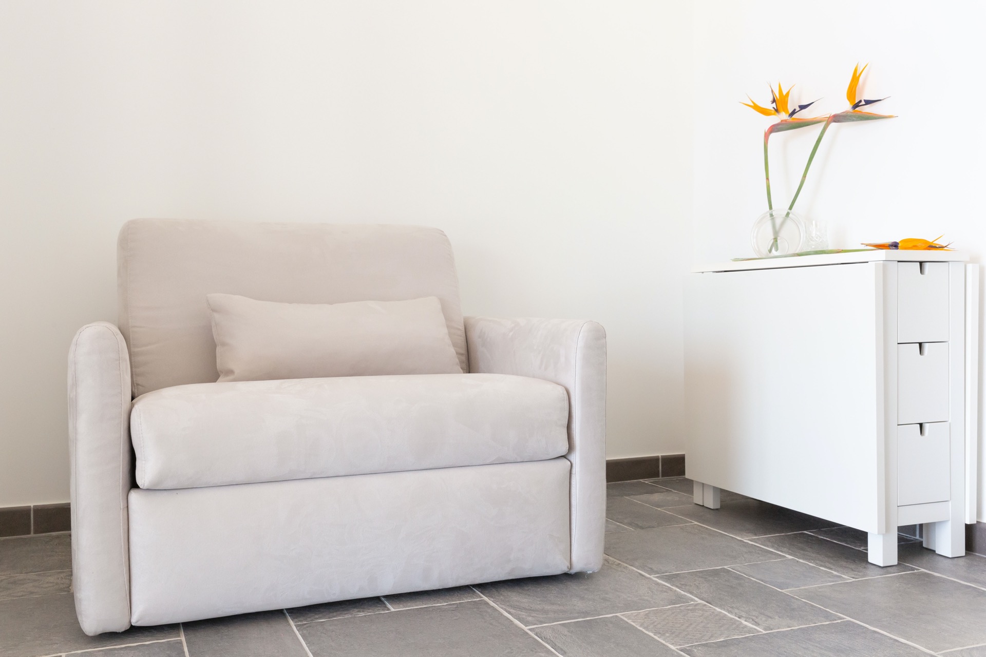 È un appartamento a piano terra, climatizzato, fresco e luminoso.